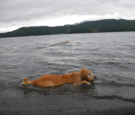 3日目にして、やっと雨があがりました^^;; 庭でちょこっと遊びましたが。。。 たまに遠くで『どーん』という音? カミナリでもなく、、、自衛隊の練習? 大きな音ではなかったけど、 クンは耳が立ってちょっと緊張気味。。。 『あの音はなーにー???』 チェックアウトは11:00なので、 ぎりぎりまでのんびり〜〜♪ チェックアウト後は最後のひと遊び^m^ クンも楽しそう〜〜♪ ライたんはいっぱいいっぱい走ったね!! クンはドッグラン内を放浪していることが多かったかな。 でもクンなりに楽しいらしいデス。 お部屋も広くてお庭付き、 ドッグランも目の前と最高のお宿でちた♪ ネットでの評判どおり、とってもGOODでした*^^* そして場所をかえて。。。 山中湖畔の『K’s POINT』[CLICK] お店の裏がすぐ湖畔とのことで行ってみると。。。 場所は最高だけど、『さっむーーーいっ!』 クンライを入水させるか、ちょびっと躊躇しました^^; 結局は、こんなカンジになりましたが。。。(笑) ライチはスイスイでしたが、 クンはハラだけ浸かってあとはゴロスリ、みたいな。 クンのお気に入りボールも持っていけばよかったなー>< いつものように水上を駆けるらいたん^m^ 水遊び→→→[CLICK] しばらく遊んでから、クンライは車へ。 私たちは店内でランチを食べてから、 帰宅の途に着くことにしました。 天気は今ひとつでしたが、 最後は水遊びもできたし、 ドッグランでもたくさん遊べたし、 ヨカッタヨカッタ♪♪♪